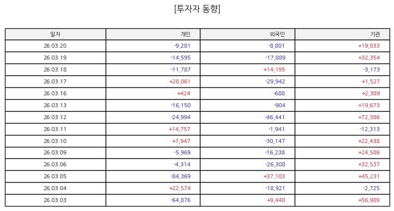 ▷ 금일 주가는 장 초반 등락을 반복했으나 점차 매수세가 유입되며 상승 흐름으로 전환되었다. 기관 중심의 순매수가 유입되면서 종가 기준으로는 안정적인 상승 마감이 나타났으며 거래량 역시 전일 대비 증가하는 모습을 보였다. 이는 단기적인 수급 개선과 함께 투자심리 회복을 시사하는 흐름으로 해석된다.
